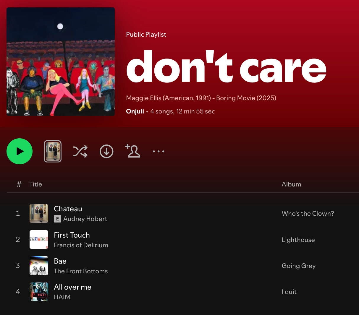 Not much to say about HAIM except I also had All Over Me, lowkey slut anthem, on a road trip playlist yesterday when Mik drove us all out to the lake and it felt like a crowd pleaser.